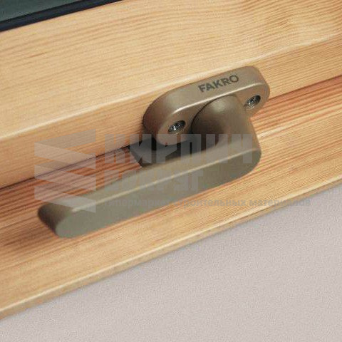 Удобная ручка, расположенная в нижней части оконной створки, позволяет легко открывать-закрывать мансардное окно и фиксировать его в двух положениях проветривания.